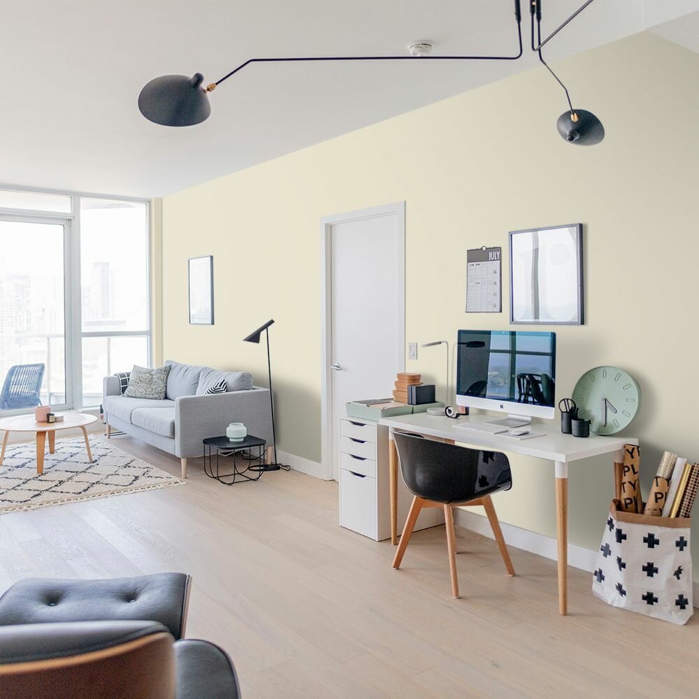 Краска моющаяся интерьерная для стен и потолков, Pollux INTERIOR без запаха, быстросохнущая, акриловая, матовое покрытие, цвет NCS S 1015-Y, 1л.
