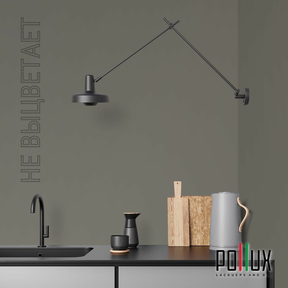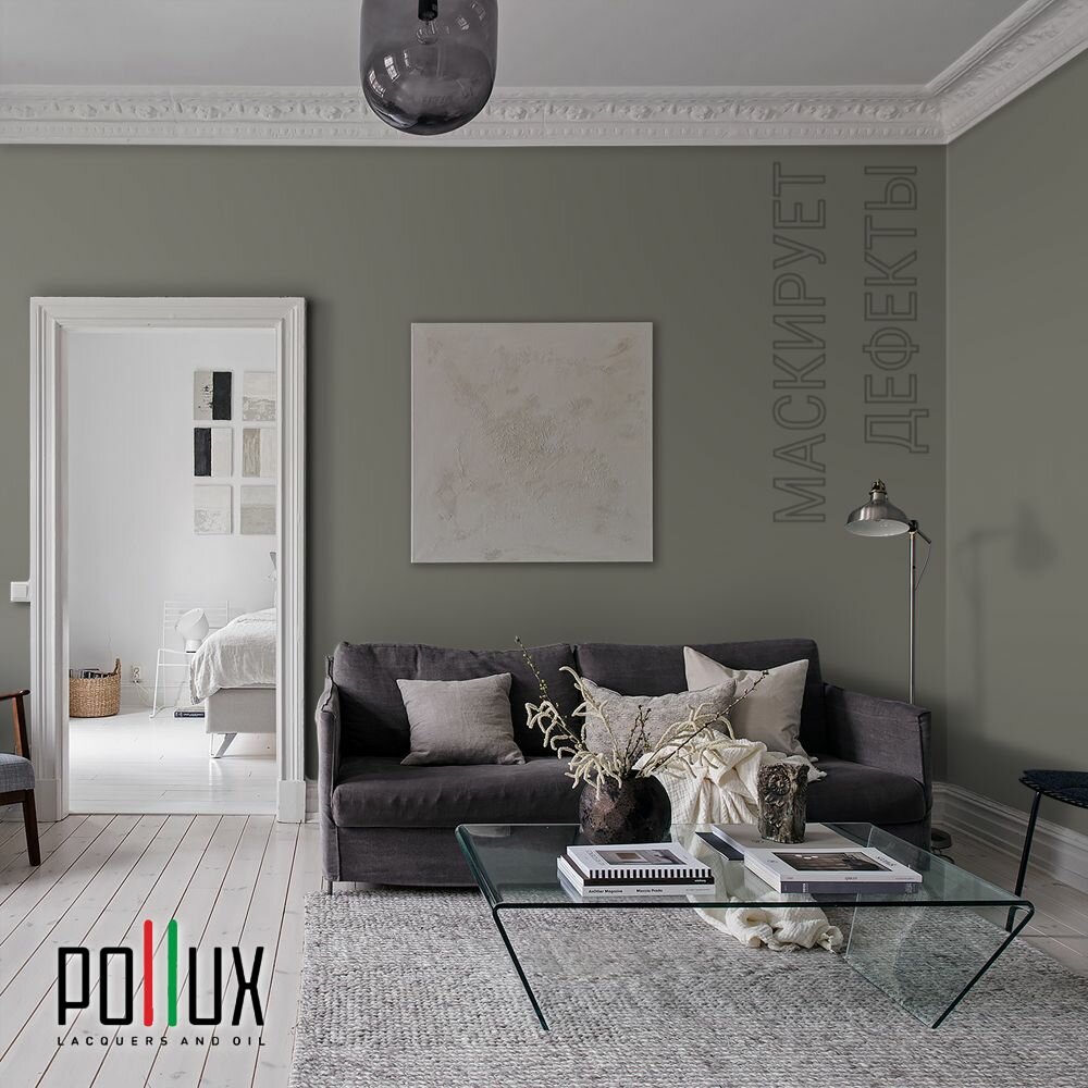 Краска моющаяся интерьерная для стен и потолков, Pollux INTERIOR без запаха, быстросохнущая, акриловая, матовое покрытие, цвет NCS S 7020-Y, 1л.