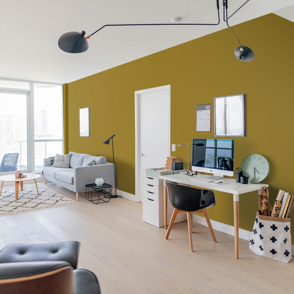 Краска моющаяся интерьерная для стен и потолков, Pollux INTERIOR без запаха, быстросохнущая, акриловая, матовое покрытие, цвет NCS S 6020-Y, 1л.