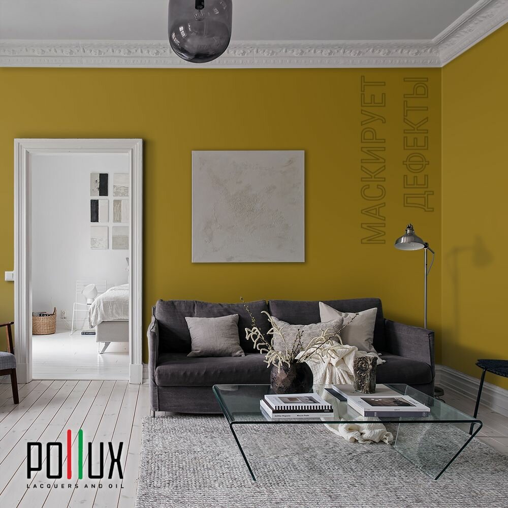 Краска моющаяся интерьерная для стен и потолков, Pollux INTERIOR без запаха, быстросохнущая, акриловая, матовое покрытие, цвет NCS S 1505-Y, 1л.