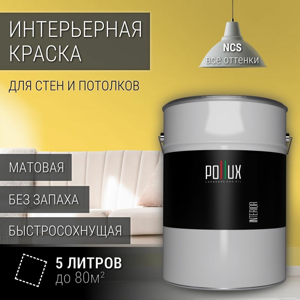 Краска моющаяся интерьерная для стен и потолков, Pollux INTERIOR без запаха, быстросохнущая, акриловая, матовое покрытие, цвет NCS S 8502-Y, 5л.