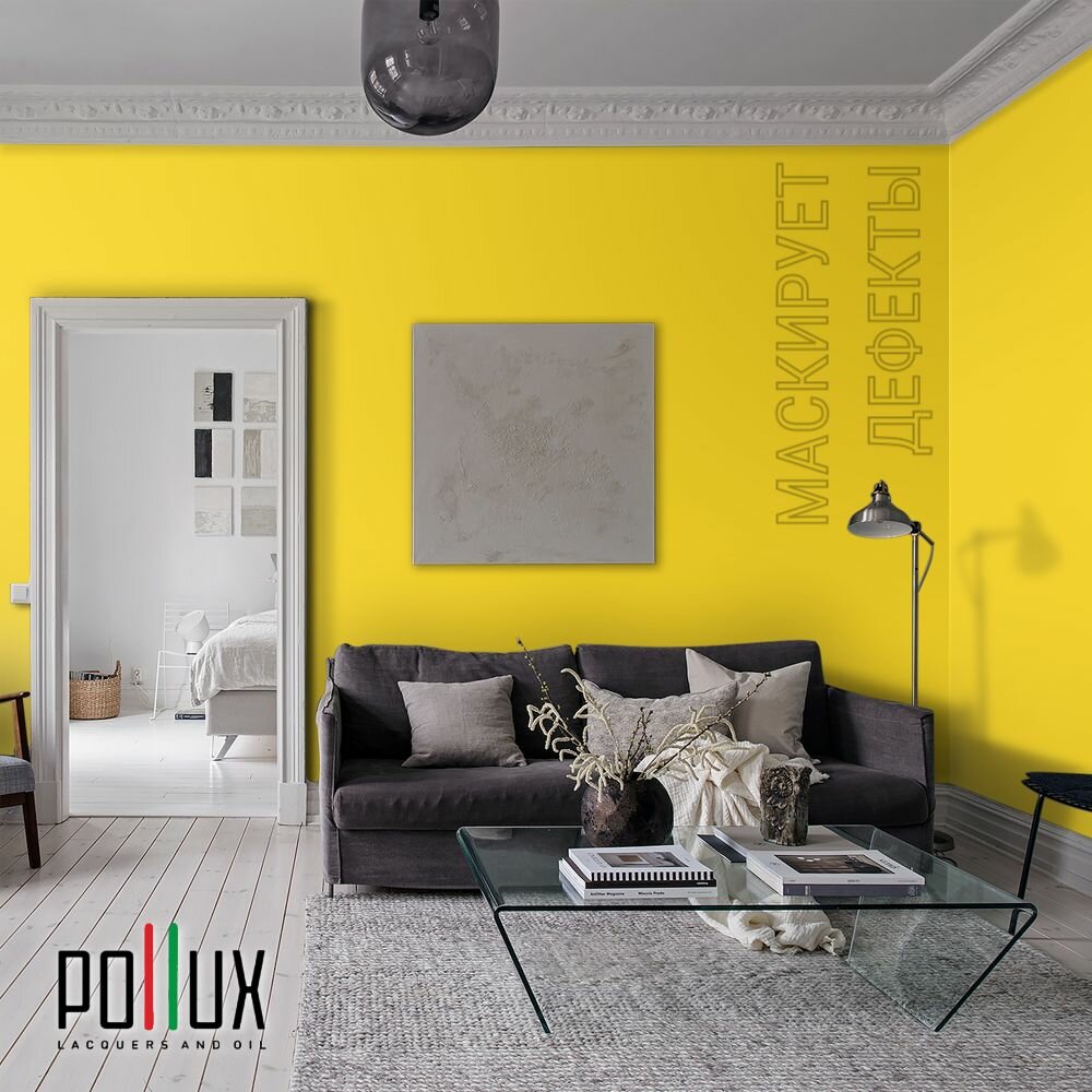 Краска моющаяся интерьерная для стен и потолков, Pollux INTERIOR без запаха, быстросохнущая, акриловая, матовое покрытие, цвет NCS S 1505-Y, 1л.