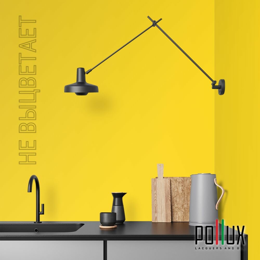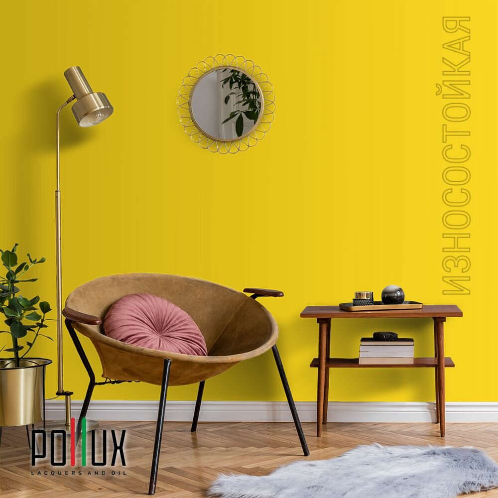 Краска моющаяся интерьерная для стен и потолков, Pollux INTERIOR без запаха, быстросохнущая, акриловая, матовое покрытие, цвет NCS S 1510-Y, 1л.