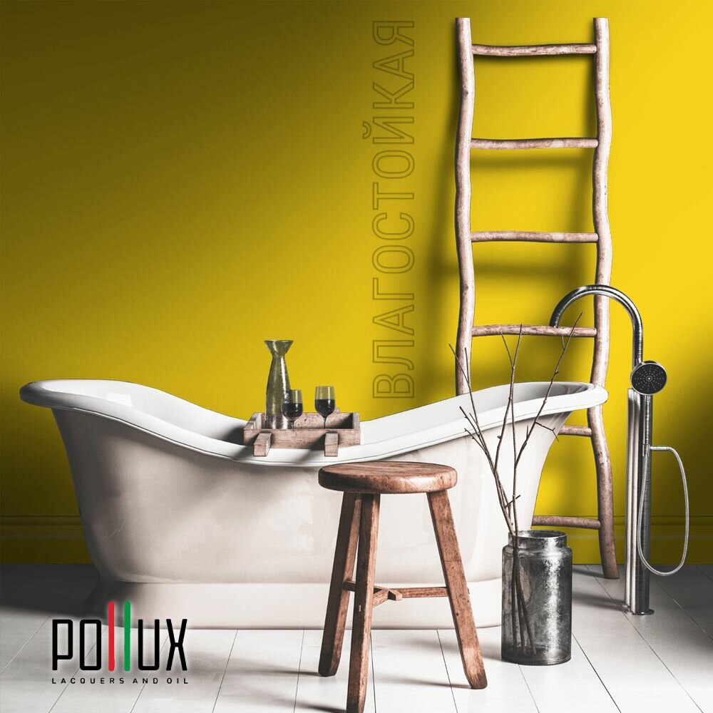 Краска моющаяся интерьерная для стен и потолков, Pollux INTERIOR без запаха, быстросохнущая, акриловая, матовое покрытие, цвет NCS S 0520-Y, 1л.