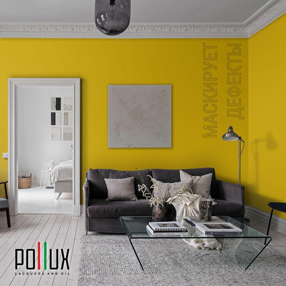 Краска моющаяся интерьерная для стен и потолков, Pollux INTERIOR без запаха, быстросохнущая, акриловая, матовое покрытие, цвет NCS S 1505-Y, 1л.
