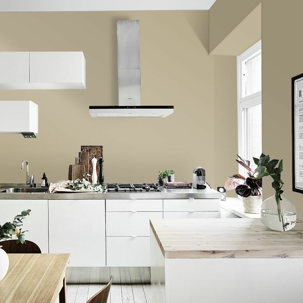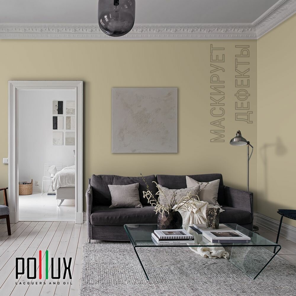 Краска моющаяся интерьерная для стен и потолков, Pollux INTERIOR без запаха, быстросохнущая, акриловая, матовое покрытие, цвет NCS S 1015-Y, 1л.
