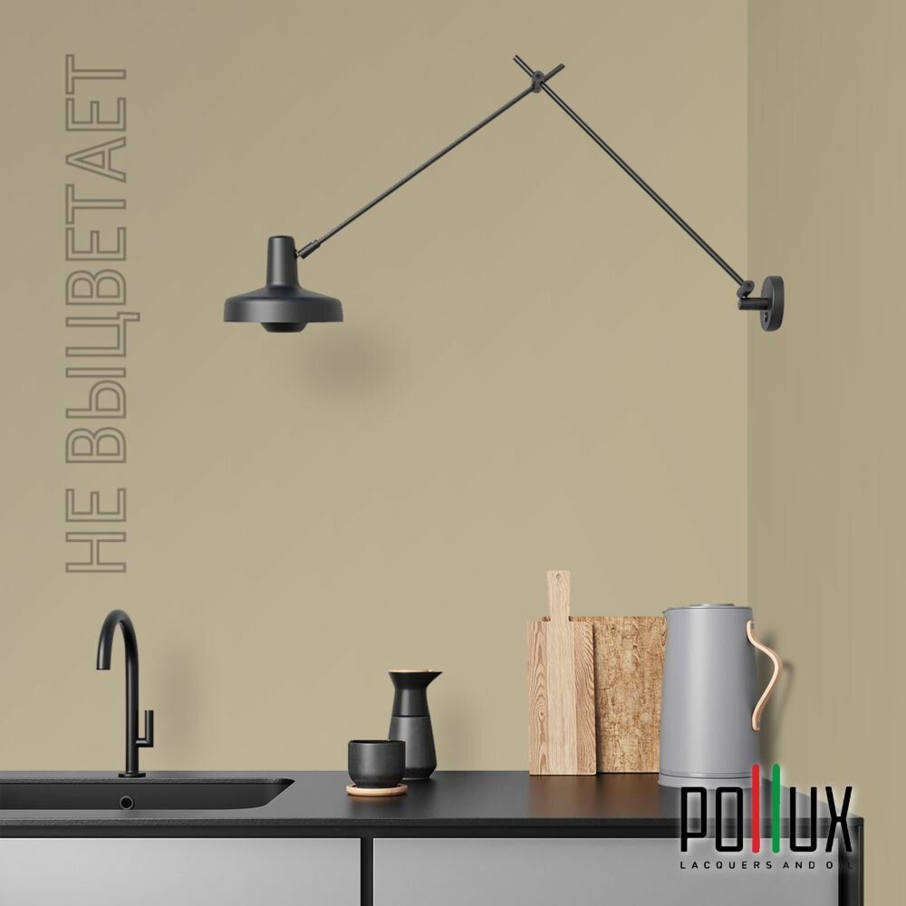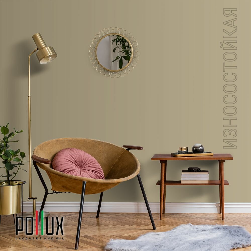 Краска моющаяся интерьерная для стен и потолков, Pollux INTERIOR без запаха, быстросохнущая, акриловая, матовое покрытие, цвет NCS S 1502-Y, 1л.
