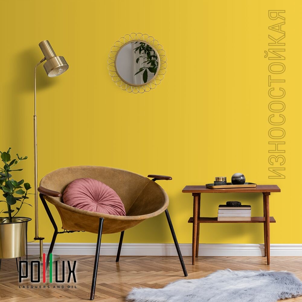 Краска моющаяся интерьерная для стен и потолков, Pollux INTERIOR без запаха, быстросохнущая, акриловая, матовое покрытие, цвет NCS S 3030-Y, 5л.