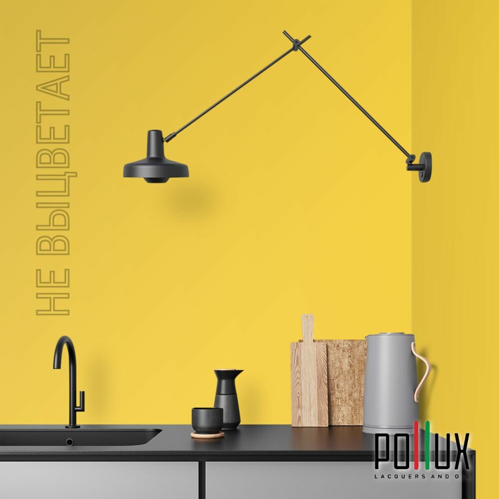 Краска моющаяся интерьерная для стен и потолков, Pollux INTERIOR без запаха, быстросохнущая, акриловая, матовое покрытие, цвет NCS S 1515-Y, 1л.