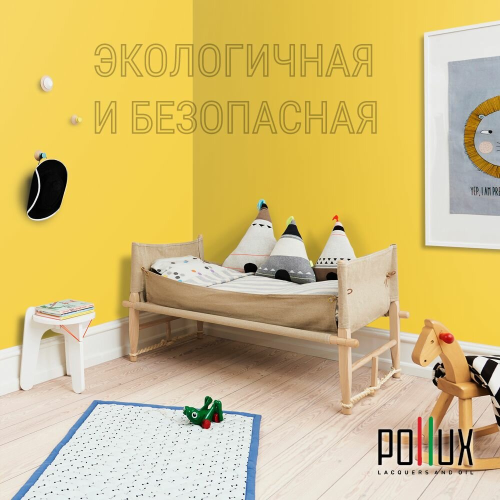 Краска моющаяся интерьерная для стен и потолков, Pollux INTERIOR без запаха, быстросохнущая, акриловая, матовое покрытие, цвет NCS S 1505-Y, 1л.