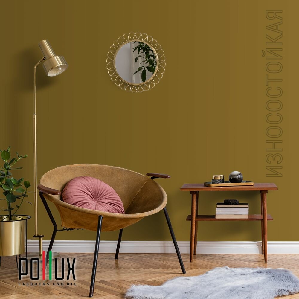 Краска моющаяся интерьерная для стен и потолков, Pollux INTERIOR без запаха, быстросохнущая, акриловая, матовое покрытие, цвет NCS S 4502-Y, 1л.