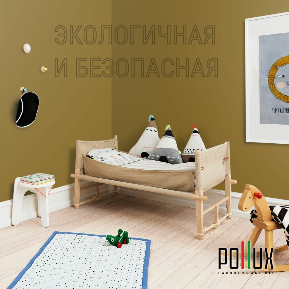 Краска моющаяся интерьерная для стен и потолков, Pollux INTERIOR без запаха, быстросохнущая, акриловая, матовое покрытие, цвет NCS S 6020-Y, 1л.