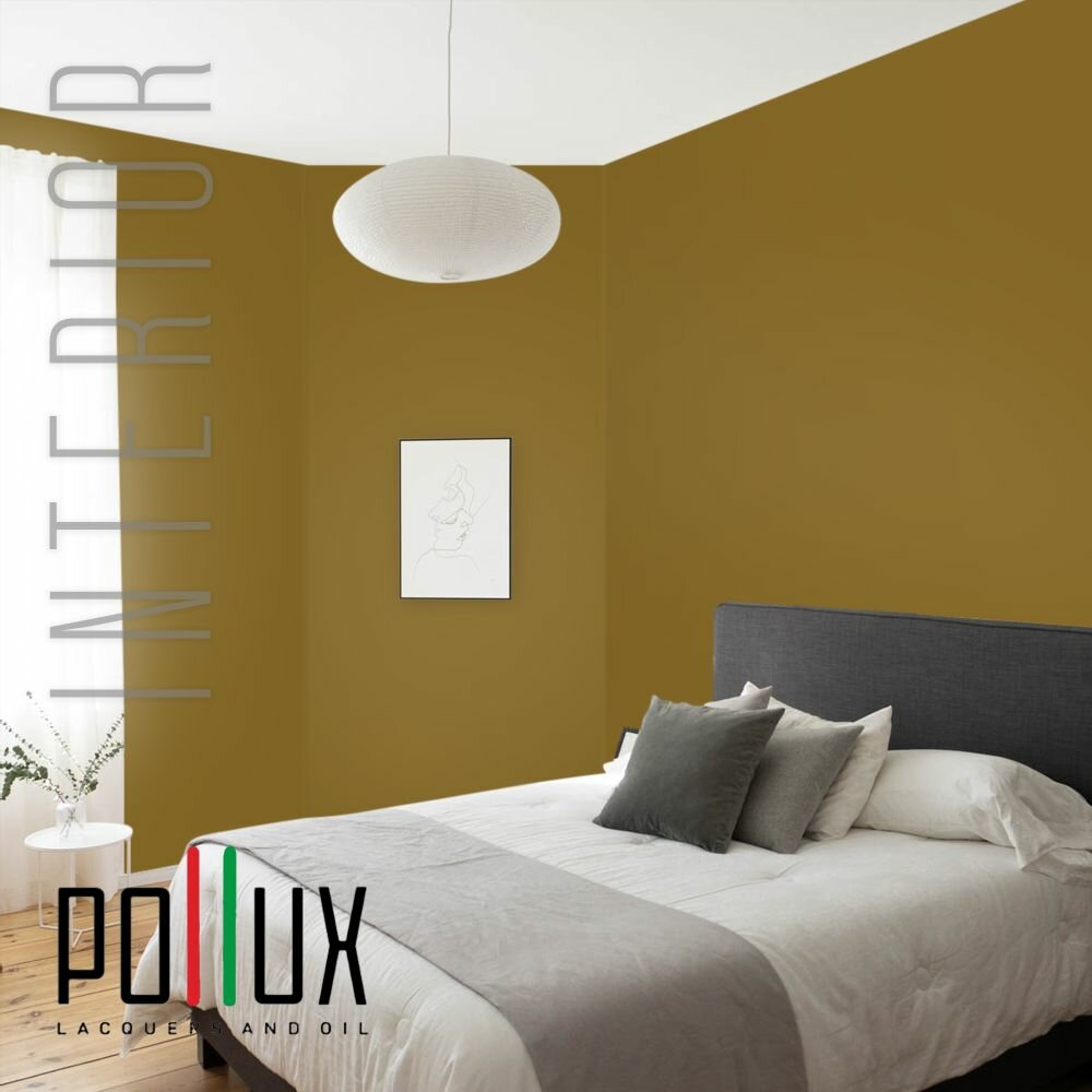 Краска моющаяся интерьерная для стен и потолков, Pollux INTERIOR без запаха, быстросохнущая, акриловая, матовое покрытие, цвет NCS S 0560-Y, 1л.