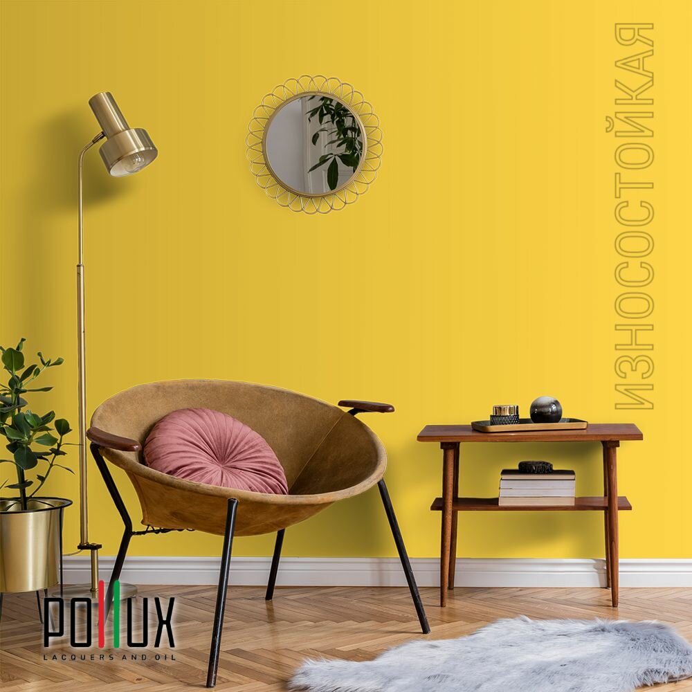 Краска моющаяся интерьерная для стен и потолков, Pollux INTERIOR без запаха, быстросохнущая, акриловая, матовое покрытие, цвет NCS S 3030-Y, 5л.