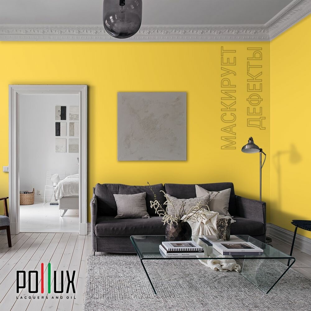 Краска моющаяся интерьерная для стен и потолков, Pollux INTERIOR без запаха, быстросохнущая, акриловая, матовое покрытие, цвет NCS S 1505-Y, 1л.