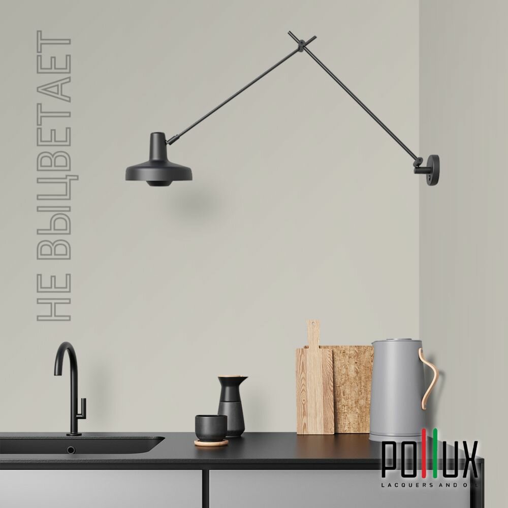 Краска моющаяся интерьерная для стен и потолков, Pollux INTERIOR без запаха, быстросохнущая, акриловая, матовое покрытие, цвет NCS S 7020-Y, 1л.