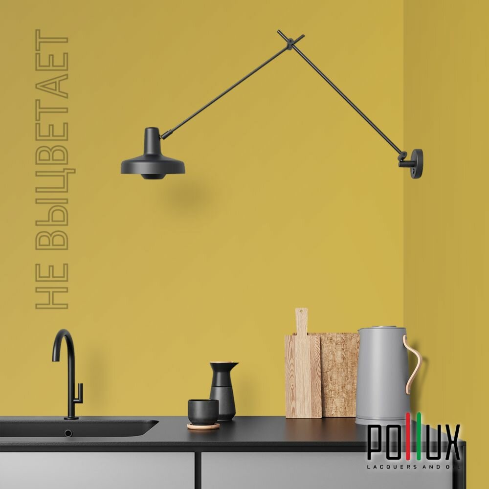 Краска моющаяся интерьерная для стен и потолков, Pollux INTERIOR без запаха, быстросохнущая, акриловая, матовое покрытие, цвет NCS S 1505-Y, 1л.