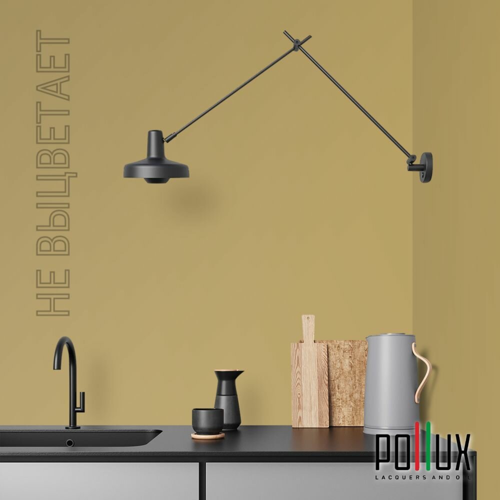 Краска моющаяся интерьерная для стен и потолков, Pollux INTERIOR без запаха, быстросохнущая, акриловая, матовое покрытие, цвет NCS S 1502-Y, 1л.