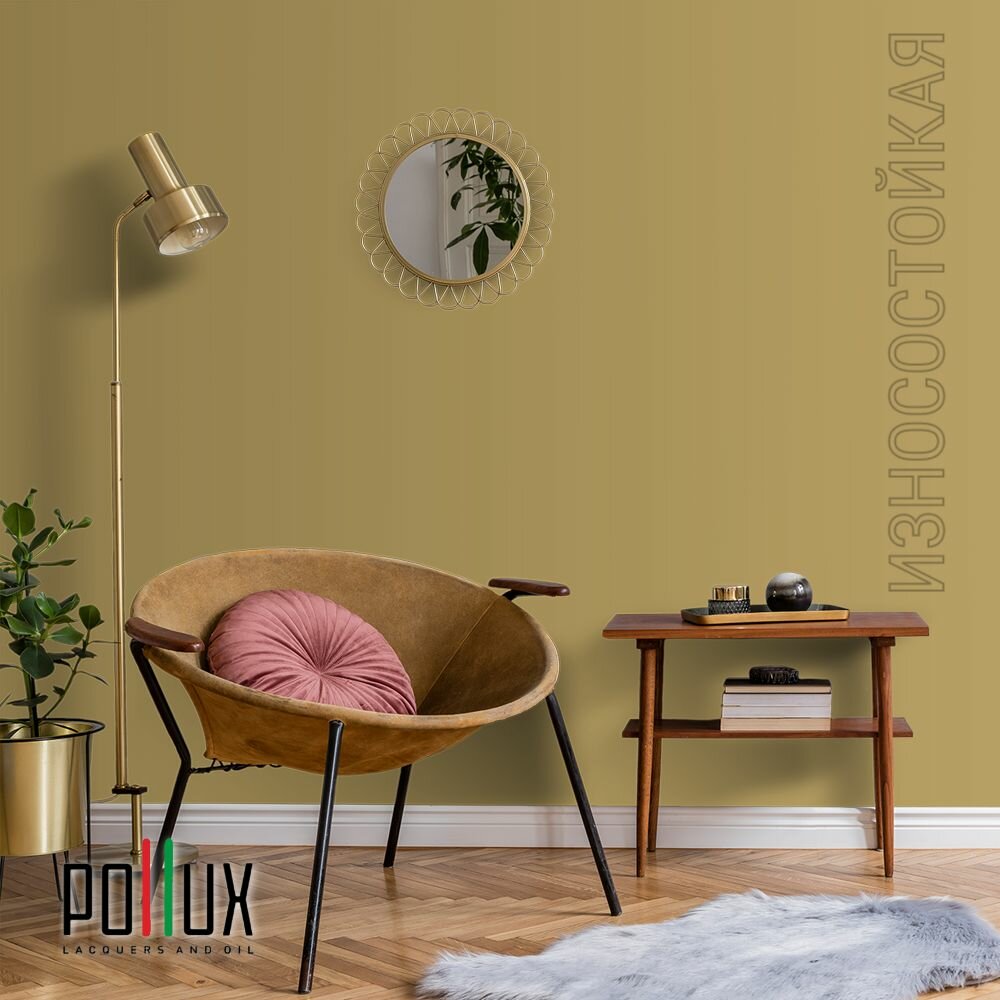 Краска моющаяся интерьерная для стен и потолков, Pollux INTERIOR без запаха, быстросохнущая, акриловая, матовое покрытие, цвет NCS S 1060-G60Y, 1л.