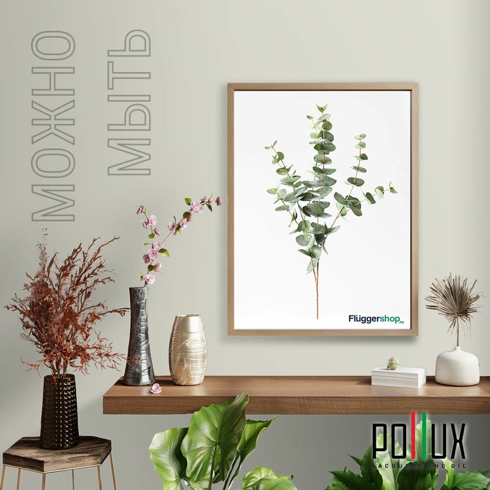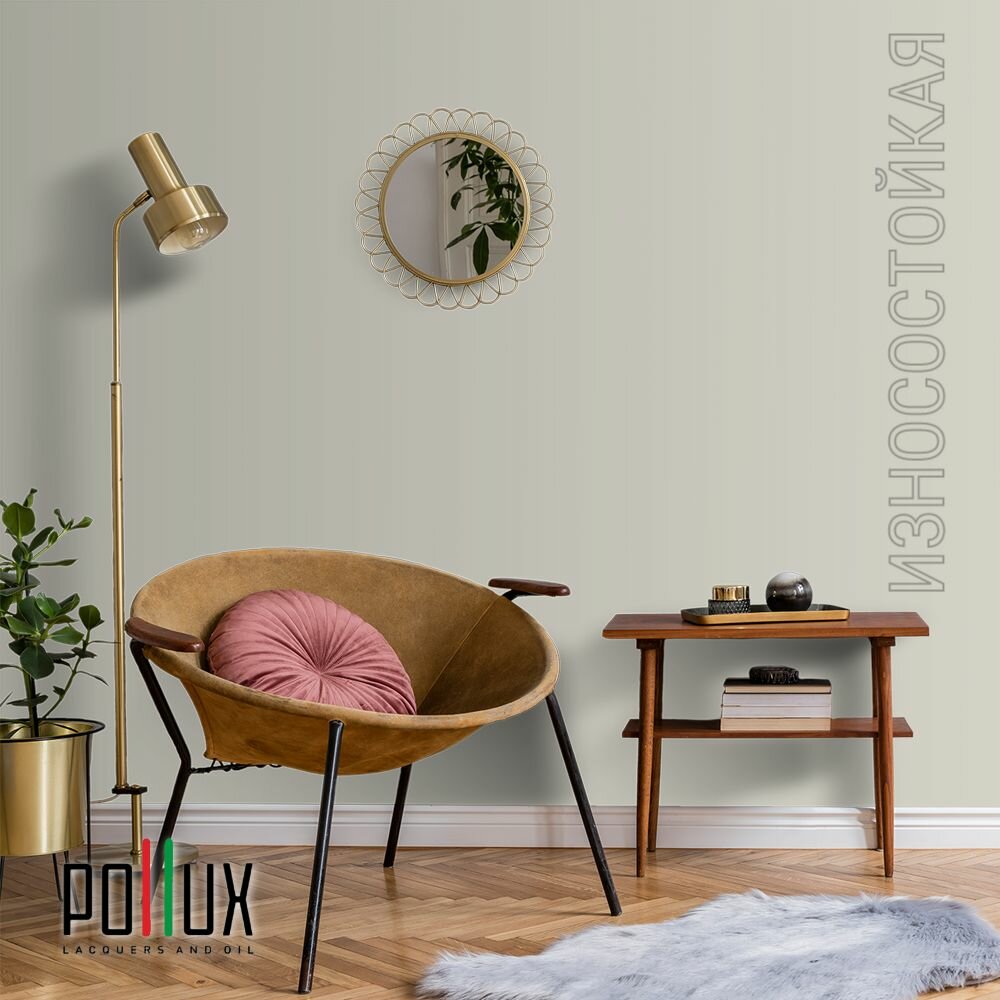 Краска моющаяся интерьерная для стен и потолков, Pollux INTERIOR без запаха, быстросохнущая, акриловая, матовое покрытие, цвет NCS S 1040-R70B, 1л.