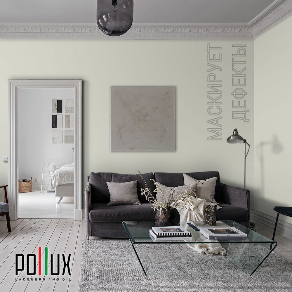 Краска моющаяся интерьерная для стен и потолков, Pollux INTERIOR без запаха, быстросохнущая, акриловая, матовое покрытие, цвет NCS S 6502-Y, 1л.
