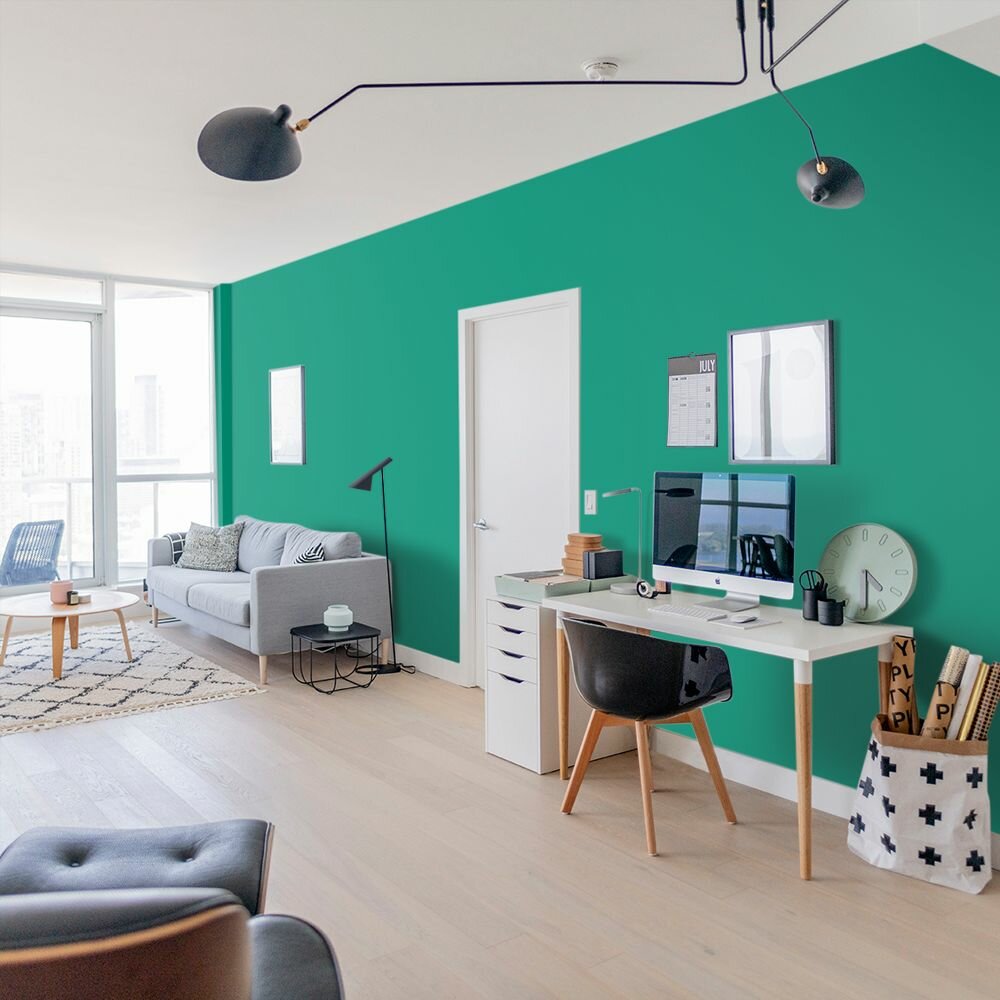 Краска моющаяся интерьерная для стен и потолков, Pollux INTERIOR без запаха, быстросохнущая, акриловая, матовое покрытие, цвет NCS S 6030-B90G, 1л.