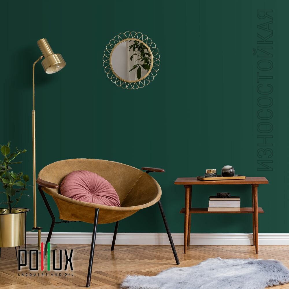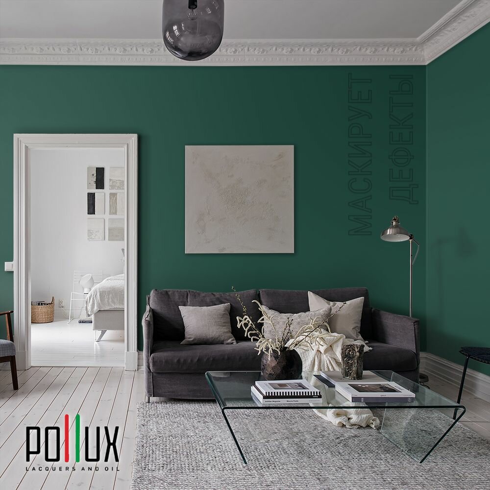 Краска моющаяся интерьерная для стен и потолков, Pollux INTERIOR без запаха, быстросохнущая, акриловая, матовое покрытие, цвет NCS S 6030-B90G, 1л.