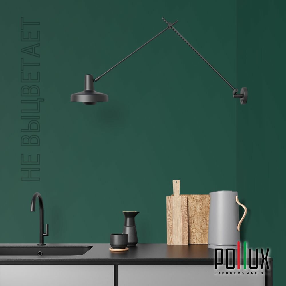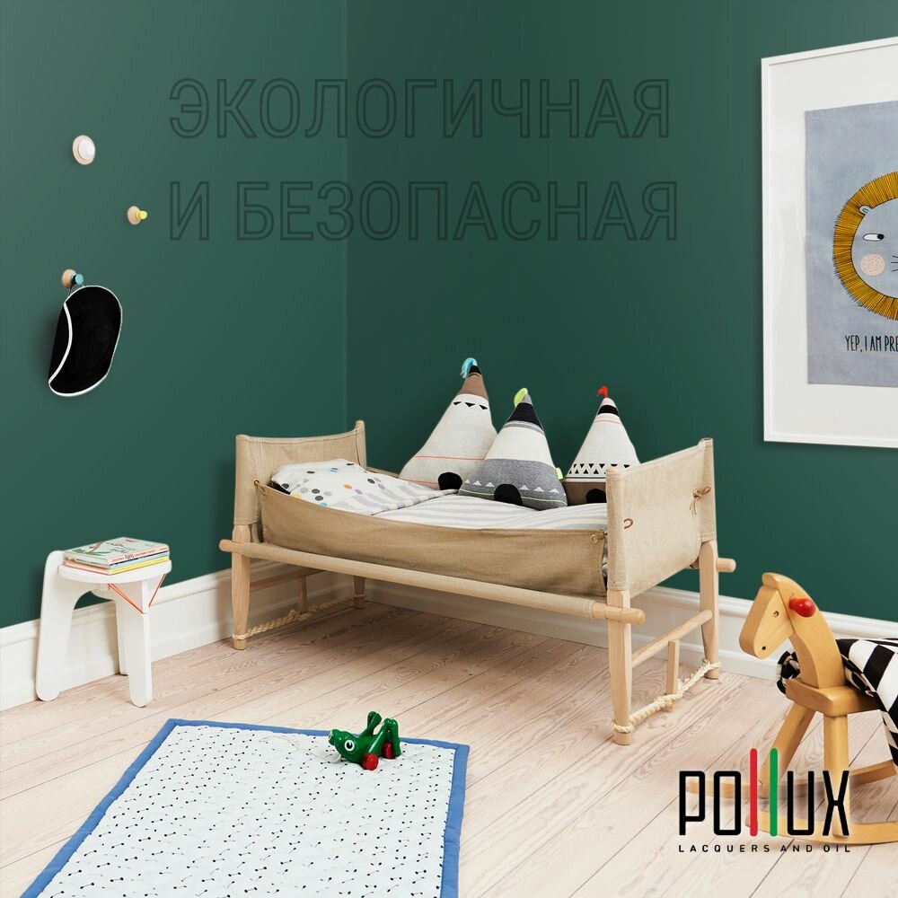 Краска моющаяся интерьерная для стен и потолков, Pollux INTERIOR без запаха, быстросохнущая, акриловая, матовое покрытие, цвет NCS S 6010-B90G, 1л.