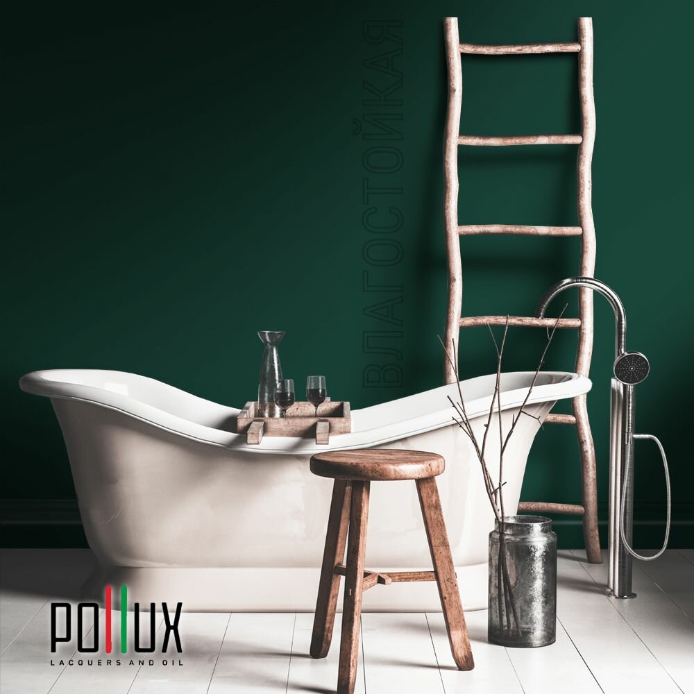 Краска моющаяся интерьерная для стен и потолков, Pollux INTERIOR без запаха, быстросохнущая, акриловая, матовое покрытие, цвет NCS S 3030-B90G, 1л.