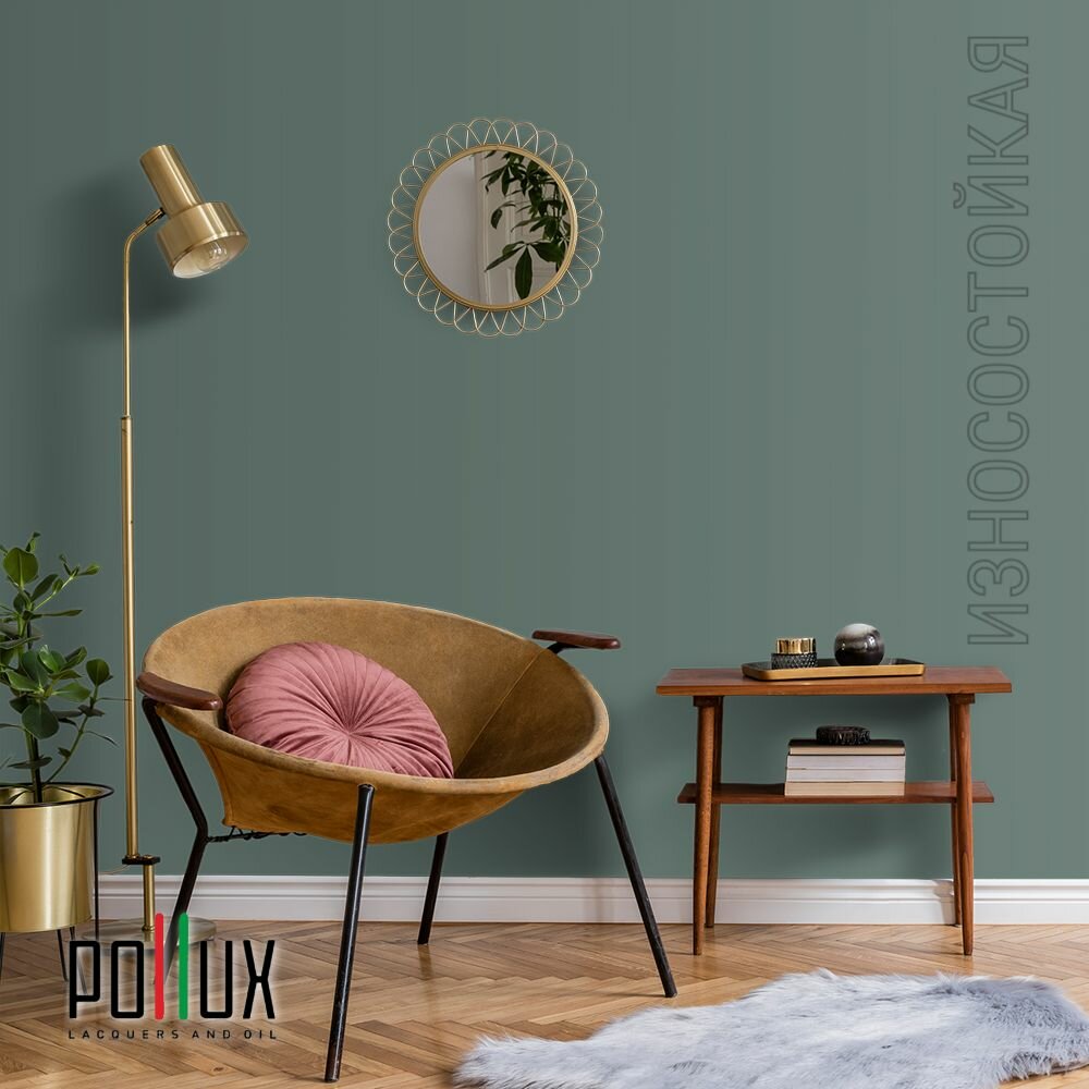 Краска моющаяся интерьерная для стен и потолков, Pollux INTERIOR без запаха, быстросохнущая, акриловая, матовое покрытие, цвет NCS S 4050-B90G, 1л.