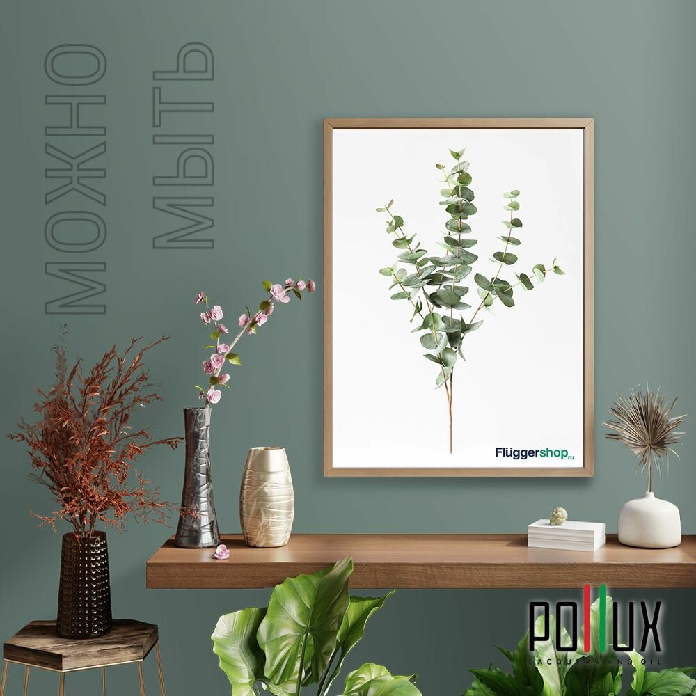 Краска моющаяся интерьерная для стен и потолков, Pollux INTERIOR без запаха, быстросохнущая, акриловая, матовое покрытие, цвет NCS S 6010-B90G, 1л.