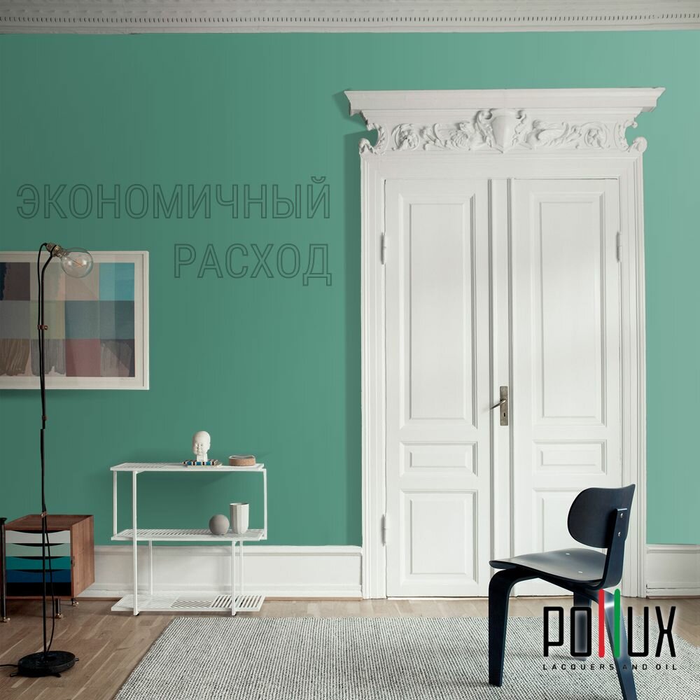 Краска моющаяся интерьерная для стен и потолков, Pollux INTERIOR без запаха, быстросохнущая, акриловая, матовое покрытие, цвет NCS S 6030-B90G, 1л.