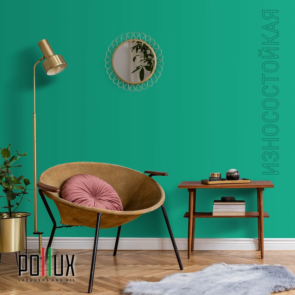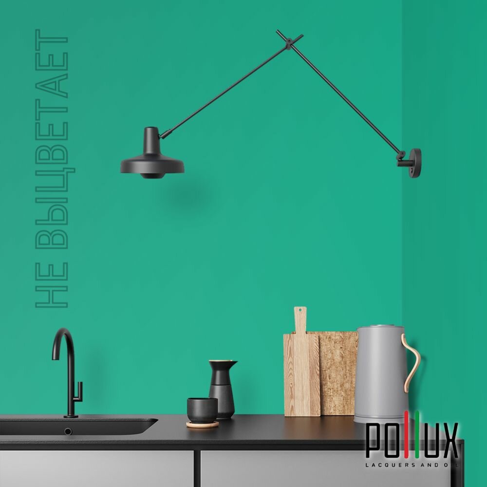 Краска моющаяся интерьерная для стен и потолков, Pollux INTERIOR без запаха, быстросохнущая, акриловая, матовое покрытие, цвет NCS S 6030-B90G, 1л.