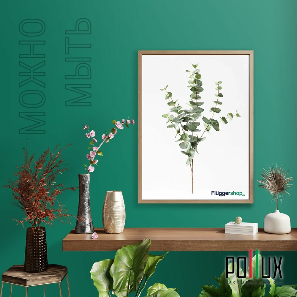 Краска моющаяся интерьерная для стен и потолков, Pollux INTERIOR без запаха, быстросохнущая, акриловая, матовое покрытие, цвет NCS S 6030-B90G, 5л.
