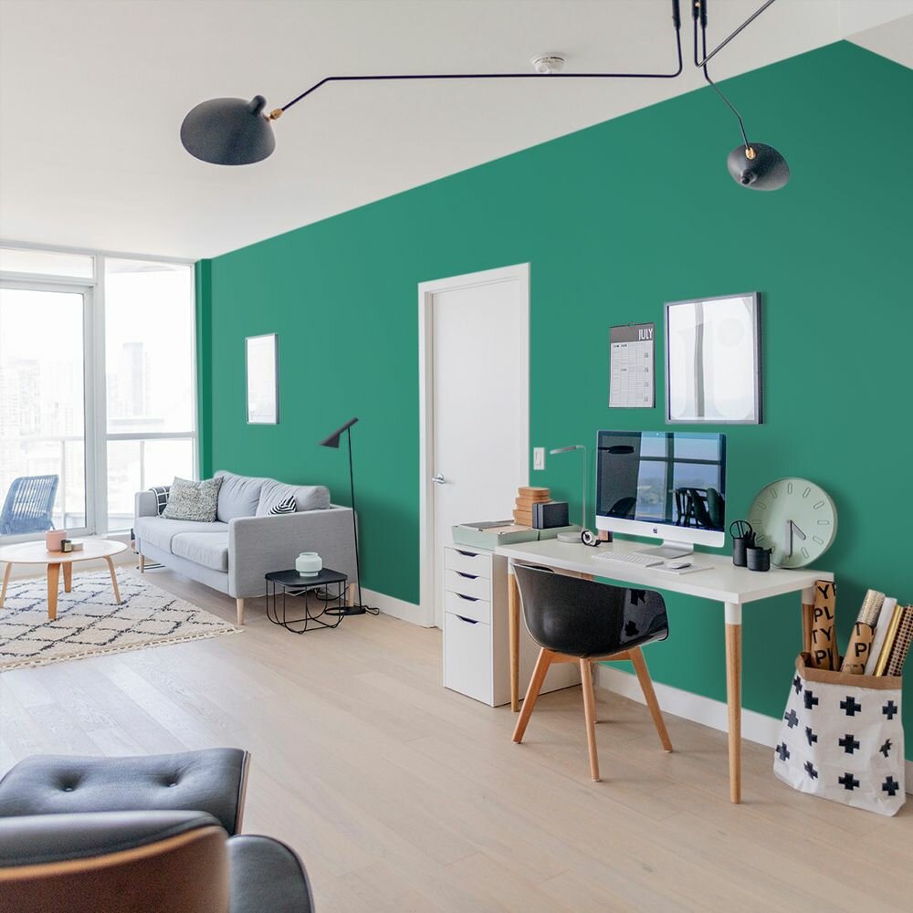 Краска моющаяся интерьерная для стен и потолков, Pollux INTERIOR без запаха, быстросохнущая, акриловая, матовое покрытие, цвет NCS S 6030-B90G, 1л.