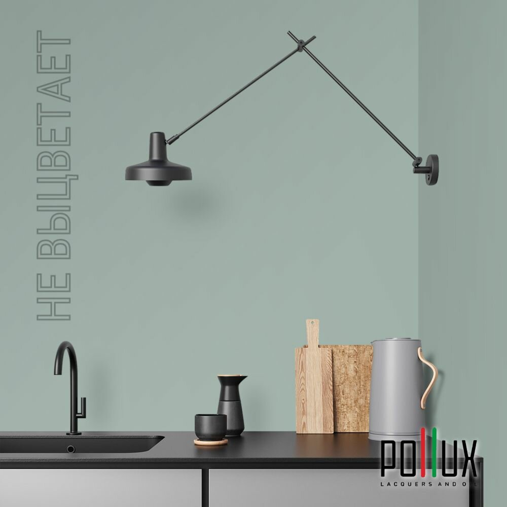 Краска моющаяся интерьерная для стен и потолков, Pollux INTERIOR без запаха, быстросохнущая, акриловая, матовое покрытие, цвет NCS S 6030-B90G, 1л.
