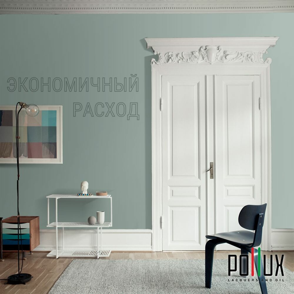 Краска моющаяся интерьерная для стен и потолков, Pollux INTERIOR без запаха, быстросохнущая, акриловая, матовое покрытие, цвет NCS S 1040-B90G, 1л.