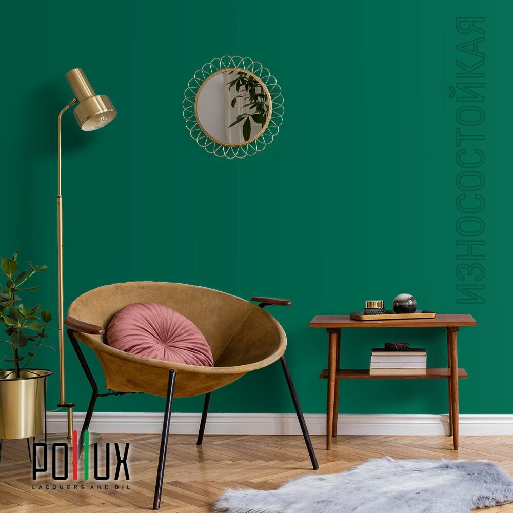 Краска моющаяся интерьерная для стен и потолков, Pollux INTERIOR без запаха, быстросохнущая, акриловая, матовое покрытие, цвет NCS S 6030-B90G, 1л.