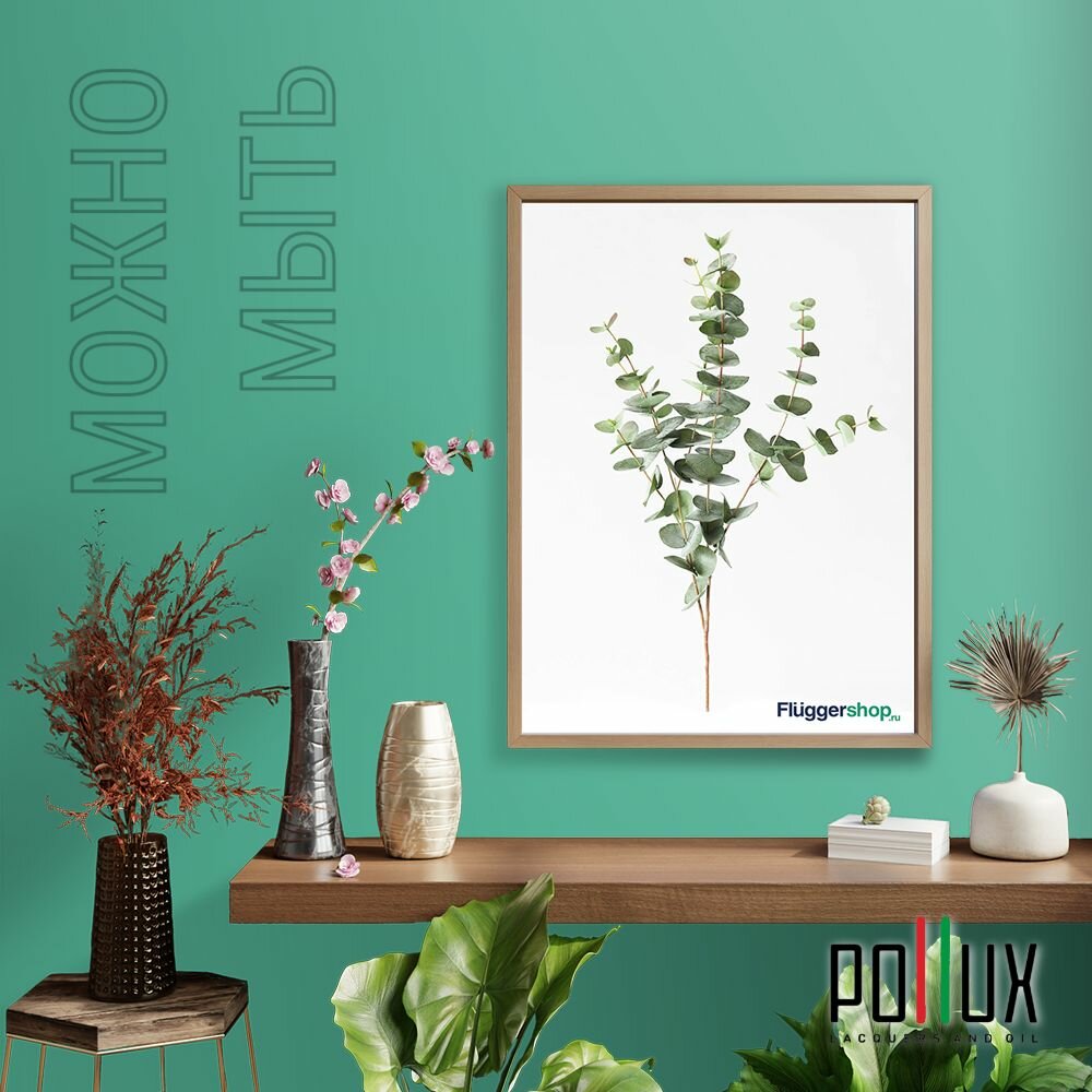 Краска моющаяся интерьерная для стен и потолков, Pollux INTERIOR без запаха, быстросохнущая, акриловая, матовое покрытие, цвет NCS S 6030-B90G, 1л.