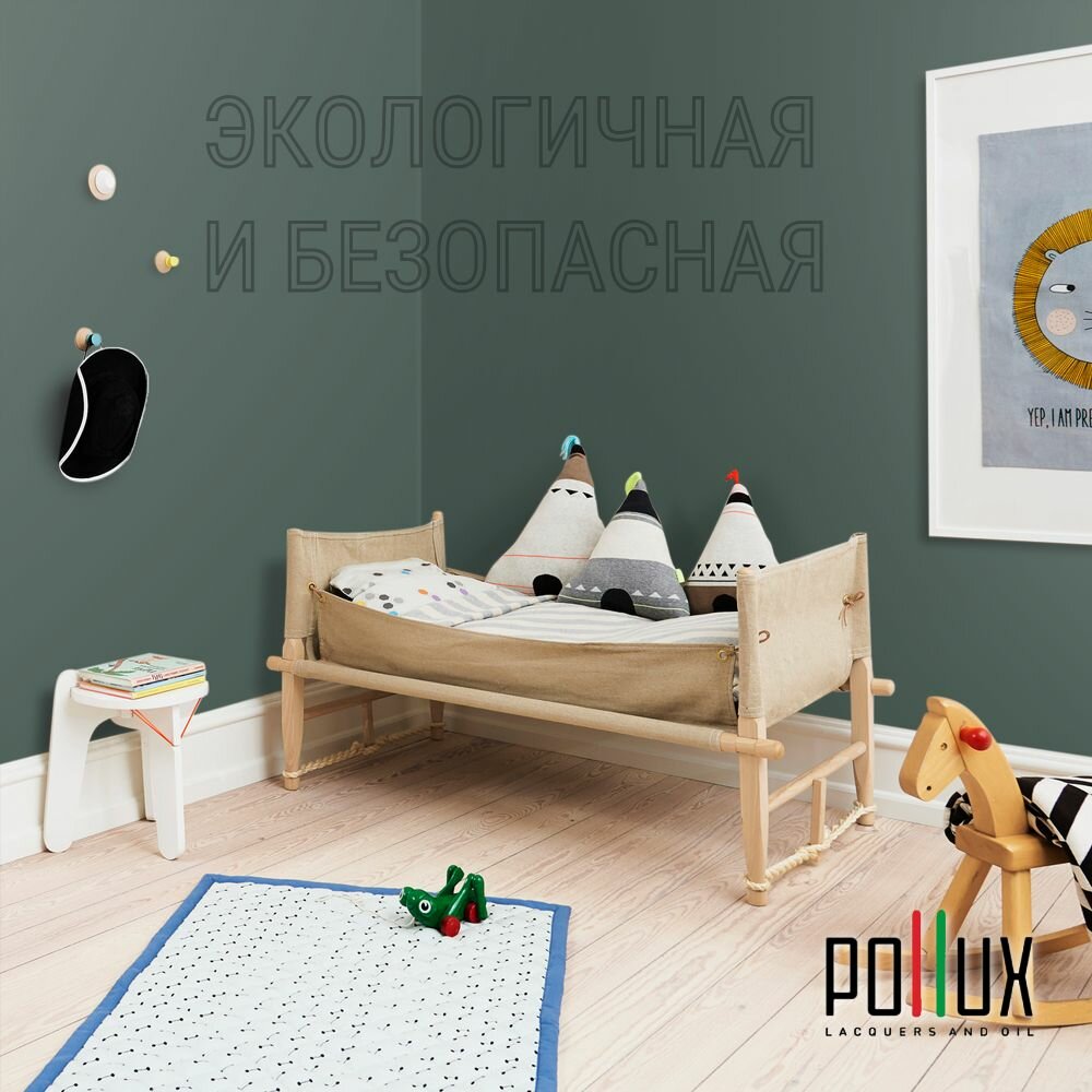 Краска моющаяся интерьерная для стен и потолков, Pollux INTERIOR без запаха, быстросохнущая, акриловая, матовое покрытие, цвет NCS S 4050-B90G, 1л.