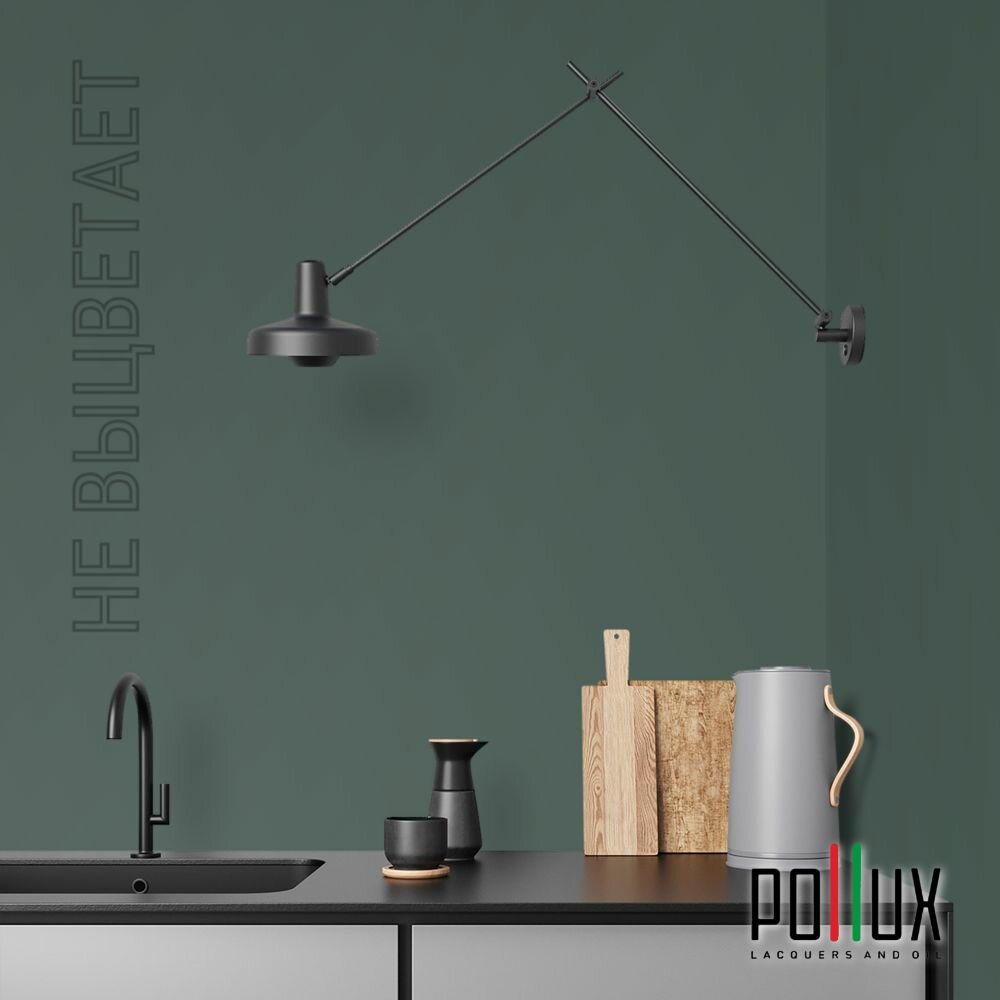 Краска моющаяся интерьерная для стен и потолков, Pollux INTERIOR без запаха, быстросохнущая, акриловая, матовое покрытие, цвет NCS S 6030-B90G, 1л.