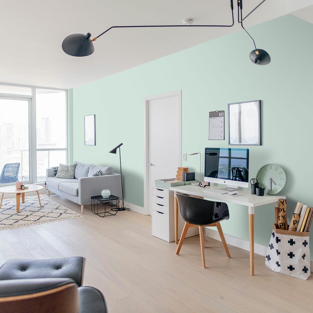 Краска моющаяся интерьерная для стен и потолков, Pollux INTERIOR без запаха, быстросохнущая, акриловая, матовое покрытие, цвет NCS S 6030-B90G, 1л.