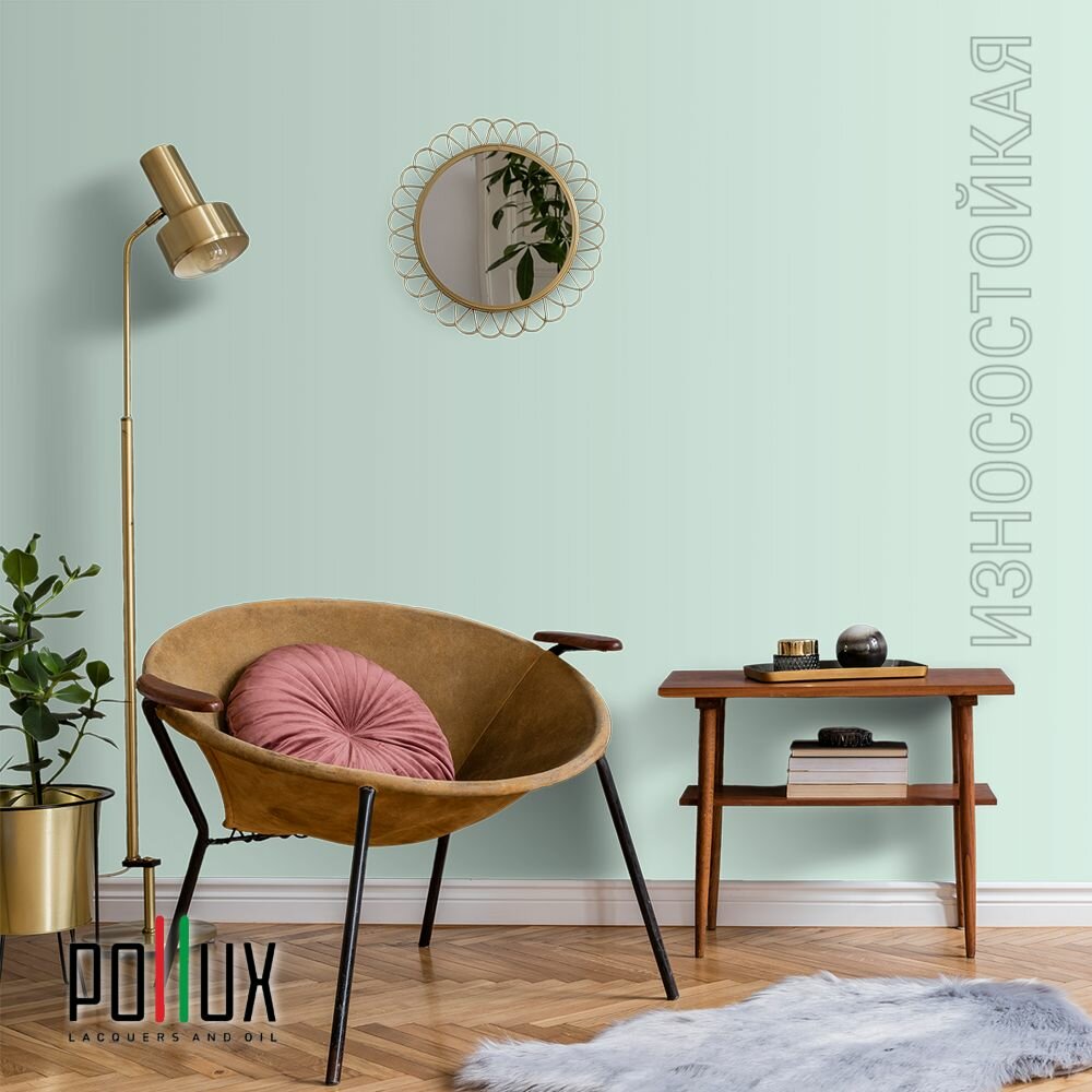 Краска моющаяся интерьерная для стен и потолков, Pollux INTERIOR без запаха, быстросохнущая, акриловая, матовое покрытие, цвет NCS S 6030-B90G, 1л.