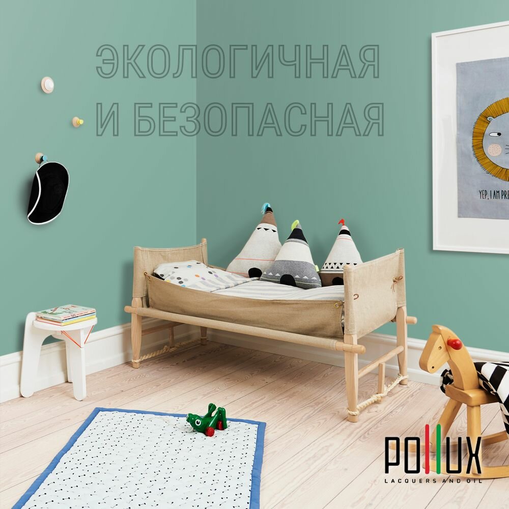 Краска моющаяся интерьерная для стен и потолков, Pollux INTERIOR без запаха, быстросохнущая, акриловая, матовое покрытие, цвет NCS S 6010-B90G, 1л.