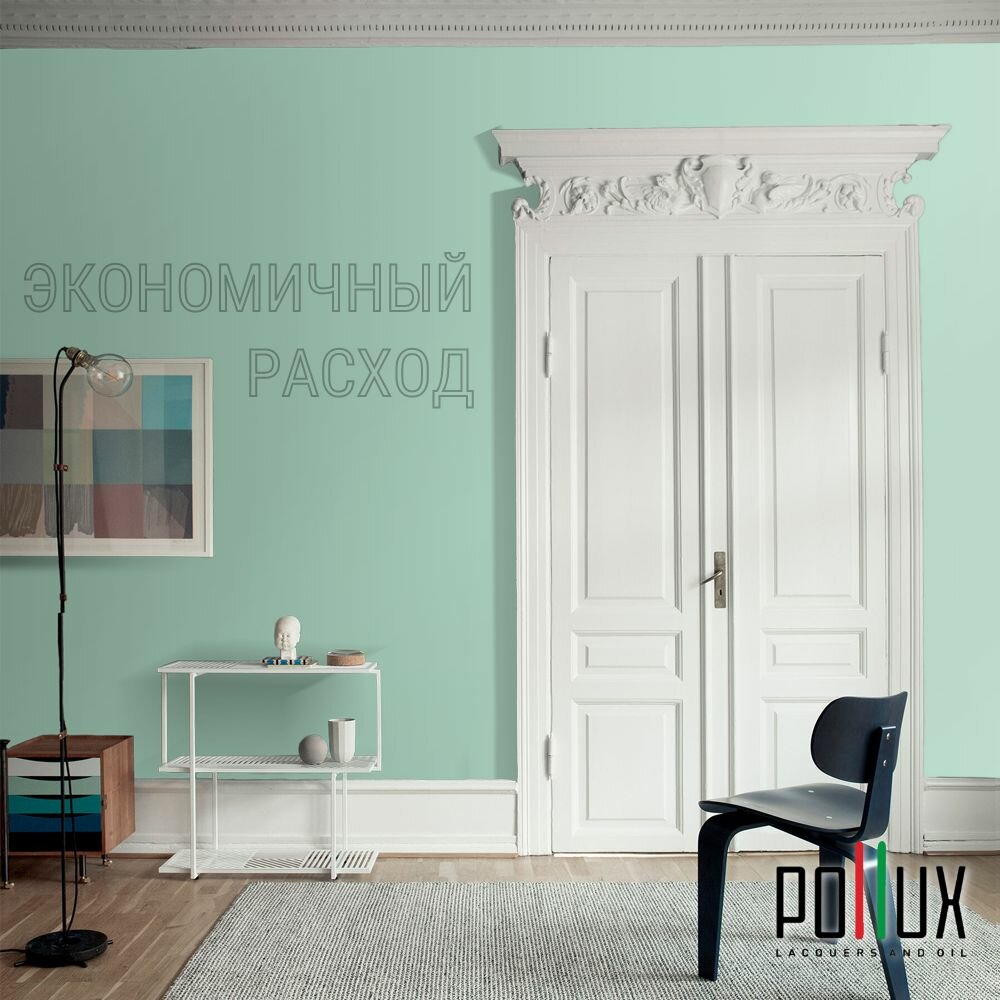 Краска моющаяся интерьерная для стен и потолков, Pollux INTERIOR без запаха, быстросохнущая, акриловая, матовое покрытие, цвет NCS S 6030-B90G, 1л.
