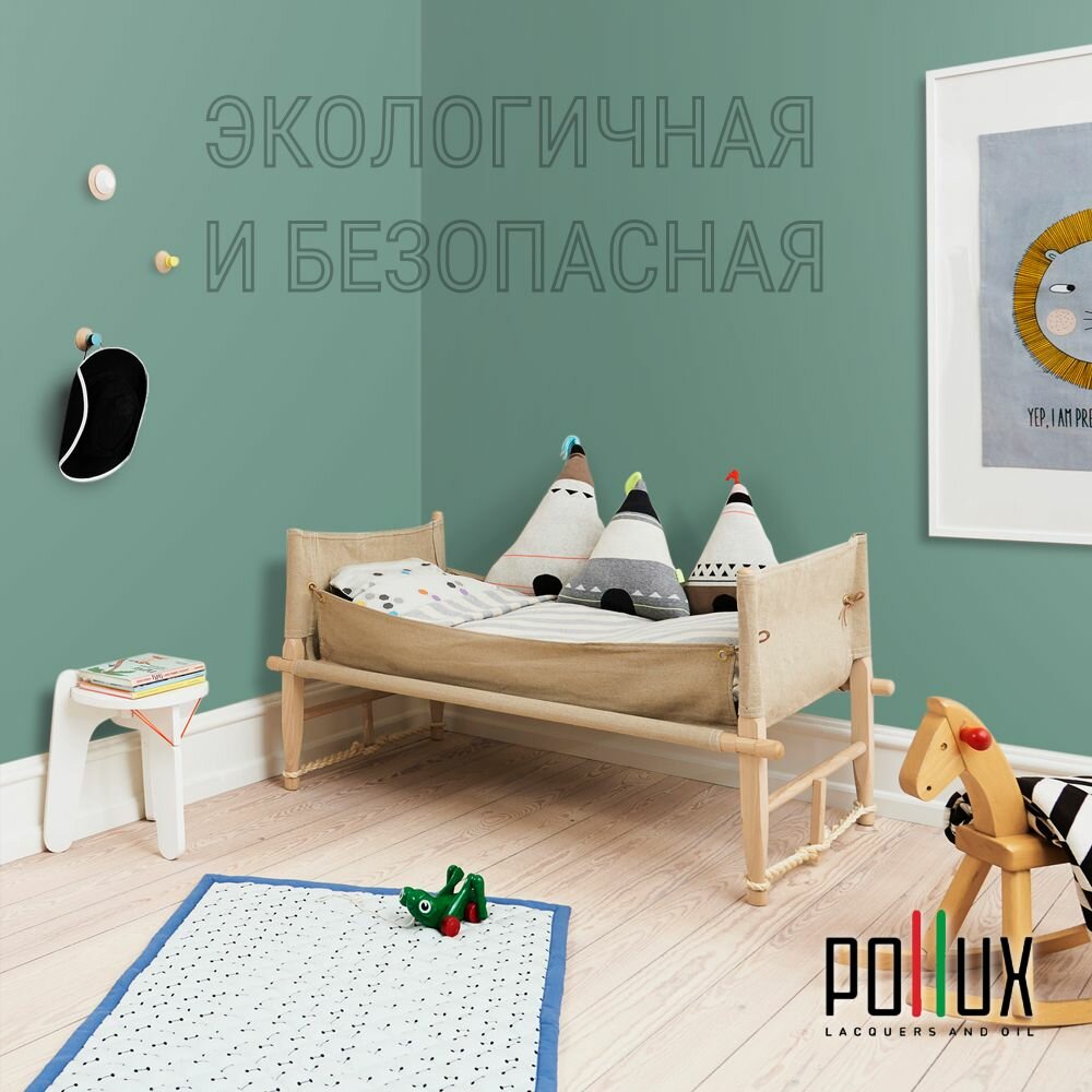 Краска моющаяся интерьерная для стен и потолков, Pollux INTERIOR без запаха, быстросохнущая, акриловая, матовое покрытие, цвет NCS S 6010-B90G, 1л.