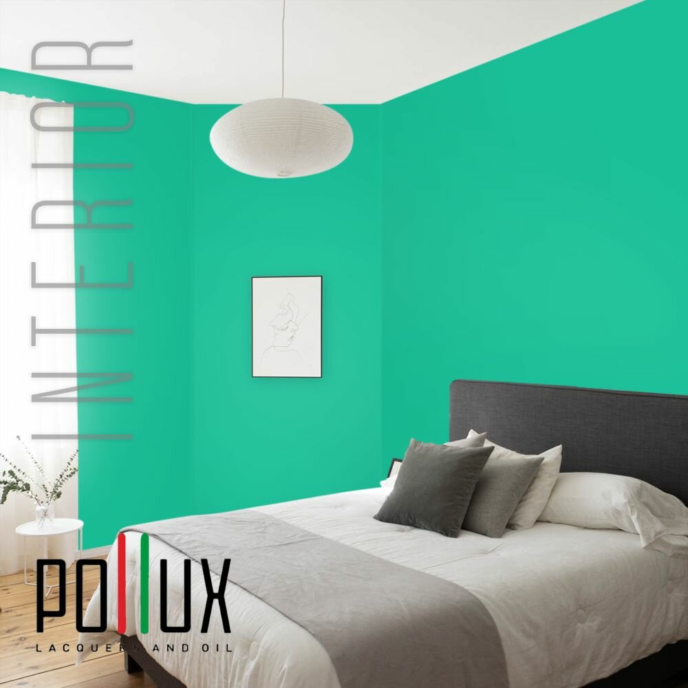 Краска моющаяся интерьерная для стен и потолков, Pollux INTERIOR без запаха, быстросохнущая, акриловая, матовое покрытие, цвет NCS S 6030-B90G, 1л.