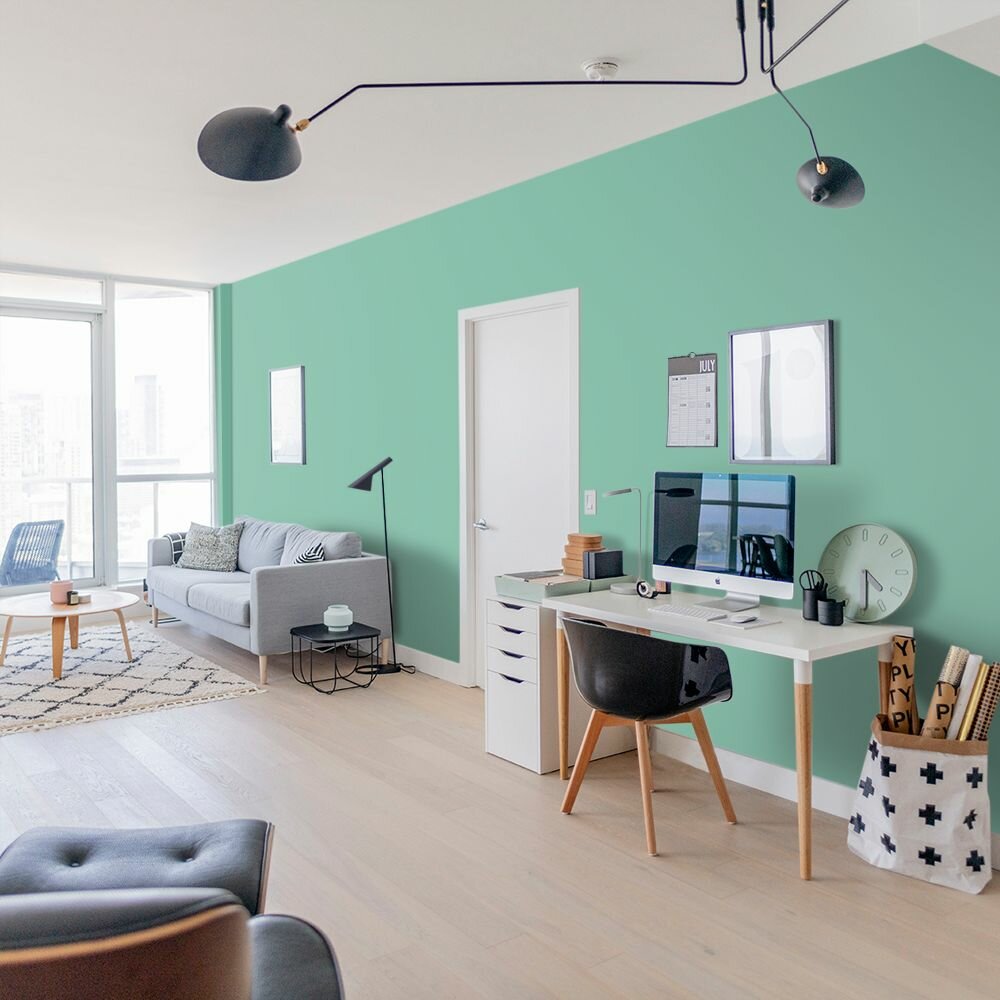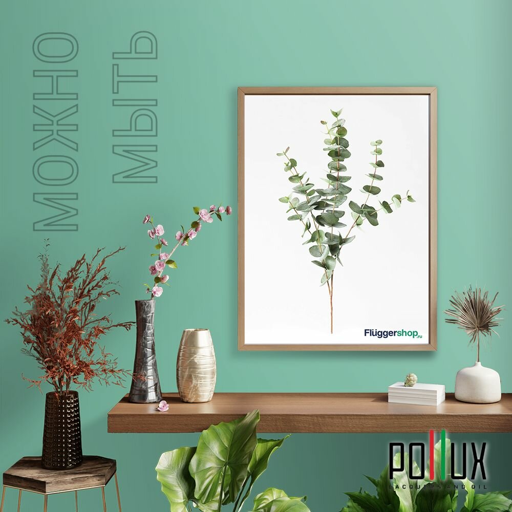 Краска моющаяся интерьерная для стен и потолков, Pollux INTERIOR без запаха, быстросохнущая, акриловая, матовое покрытие, цвет NCS S 6030-B90G, 1л.