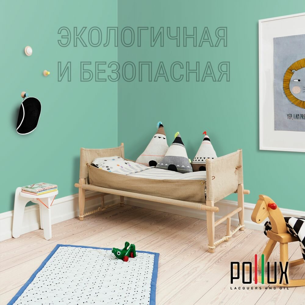 Краска моющаяся интерьерная для стен и потолков, Pollux INTERIOR без запаха, быстросохнущая, акриловая, матовое покрытие, цвет NCS S 6020-B90G, 1л.