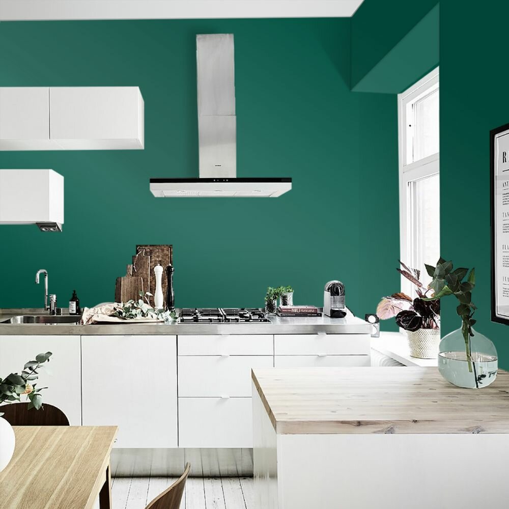 Краска моющаяся интерьерная для стен и потолков, Pollux INTERIOR без запаха, быстросохнущая, акриловая, матовое покрытие, цвет NCS S 4050-B90G, 1л.